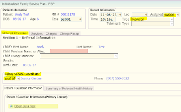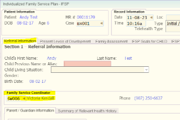 - At the initial IFSP, the provider listed as the Family Service Coordinator on the Referral Information tab of the IFSP is who admin will update (if necessary) to be the PSP in the patient demographics.