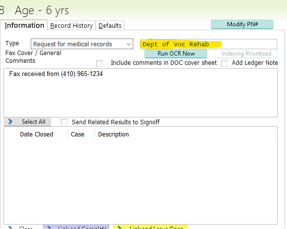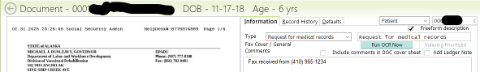 Click on the records request to open it. There you should have a fax cover sheet and possibly a letter stating what the request for records is asking for. Then you should then have a signed ROI make sure to check that it is signed.