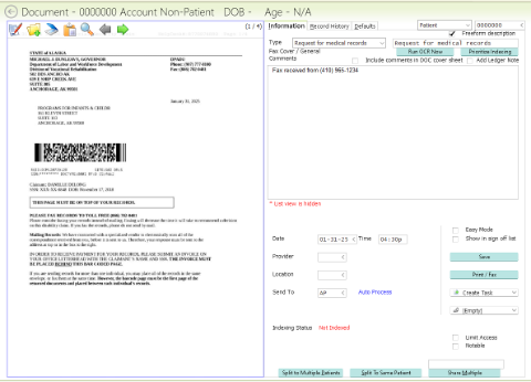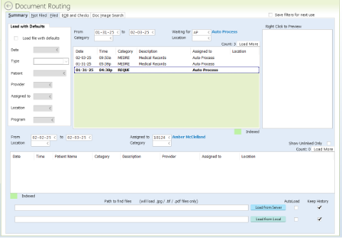 Once you open the document routing page you will see all the faxes that have been received. You may need to adjust the date range, depending on when the last time records requests were processed.