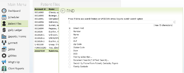 Once you have verified that everything is there and correct you will open another tab in raintree. Go to Patient files, F to find , enter child's name that the records request was for.