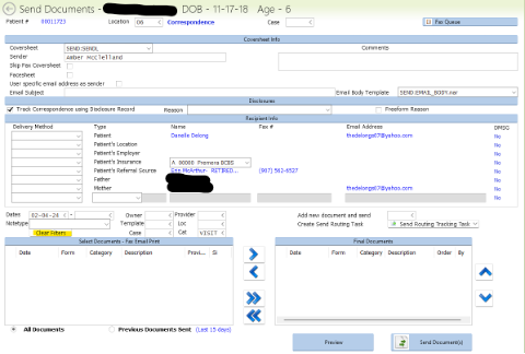 - Go to child’s chart to either fax/email necessary documents to recipient