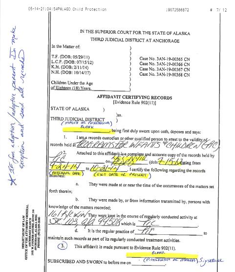 - Make copy of Affidavit and full set of records included once signed by notary/yourself (or self-certification) by scanning document into Scan folder so you can put into child’s chart in RT