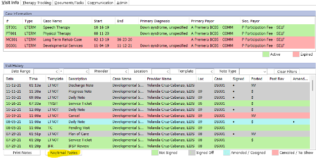 Then you will go to the Visit Info tab and click on the Fax/Email Notes tab.