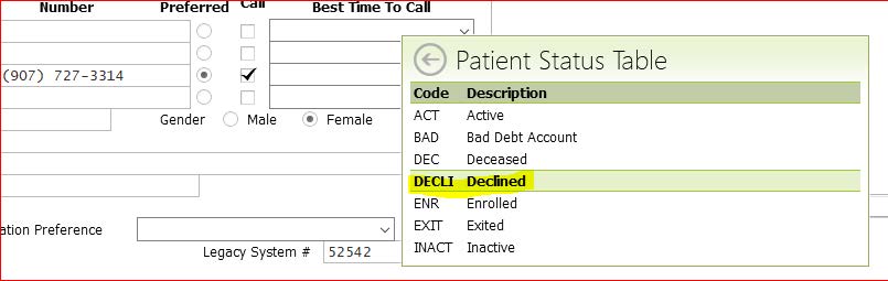- CHANGE STATUS TO “DECLINED” IN PATIENT DEMOGRAPHICS TAB