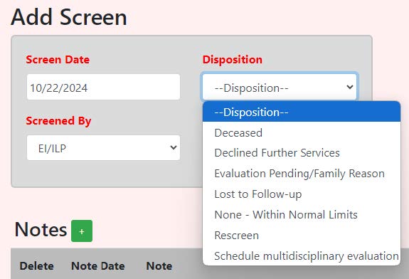 - If this is the case, then the child will need BOTH the disposition of “Rescreen” AND “Evaluation Pending/Family Reason” with the following reason for pending: