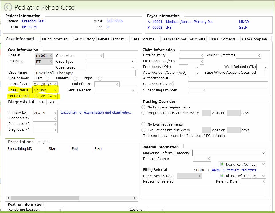 Picture of how to use the Pediatric Rehab Case to show as a screening on Provider Dashboard