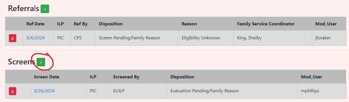- Once a developmental screening is completed, it needs to be added to the state database under the Ref/Screen tab