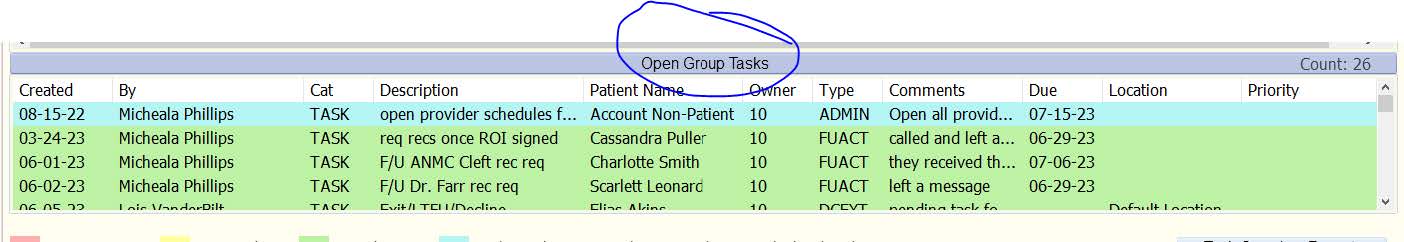 1. Admin gets an automated task sent to Group 10 every time a functional evaluation is signed off on by the primary PIC provider. You can find Group 10 tasks from the Main Menu → Dashboard → Open Tasks tab → Open Group Tasks (3rd grouping, on the very bottom. Then double click the Open Group Tasks to enlarge and see all the tasks