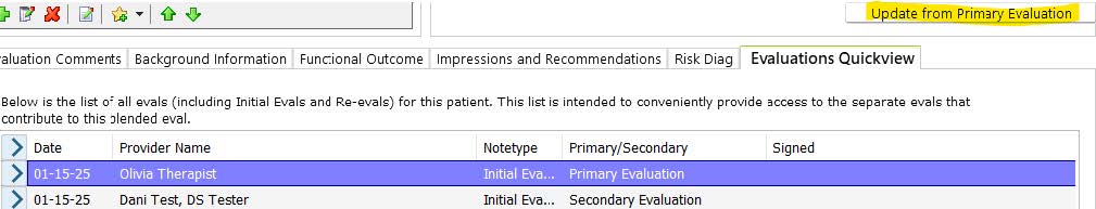 In the case of an evaluation from another ILP/non-provider specific report, go into medical records and get the evaluators from that report for the roles drop down in SDB.