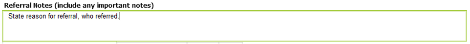 Include information that does not fit in to other areas. Information that is not intended to be disclosed to others, such as mental health information. If you wish for this information to print in the intake note, check the ‘Show in Printed Intake Note’ box.