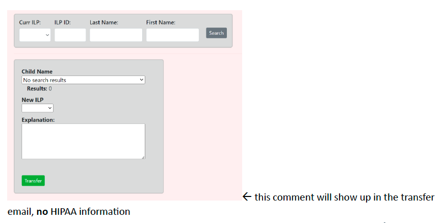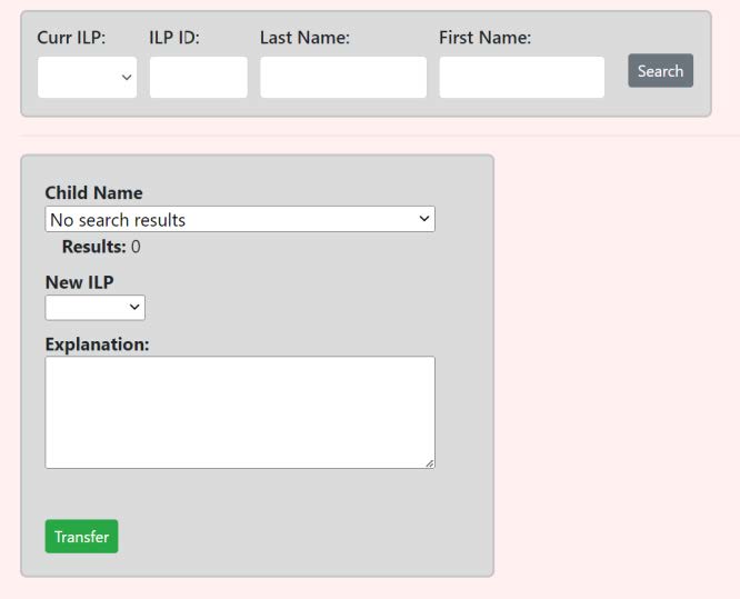 • Email Change of Placement form:  "please transfer (enter child name) to (enter new ILP). Family or child relocated to (enter City) on (enter date)" and advise if the discharge note is completed.
