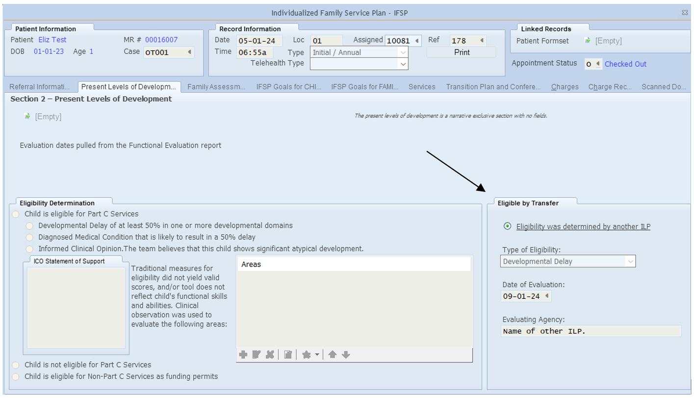 - In the IFSP, go to Subtab (see below) Eligible by Transfer.