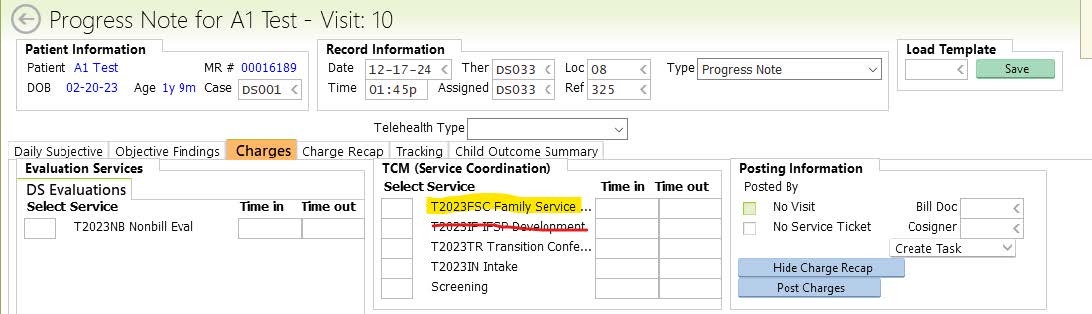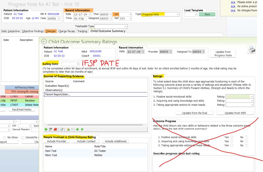 Assure that the evaluation is complete with COSF scores. If COSF scores are not included with the evaluation, complete a Progress note with ONLY the COSF for the date of the enrollment IFSP, and completed based on the evaluation notes, provider observation, and parent input.